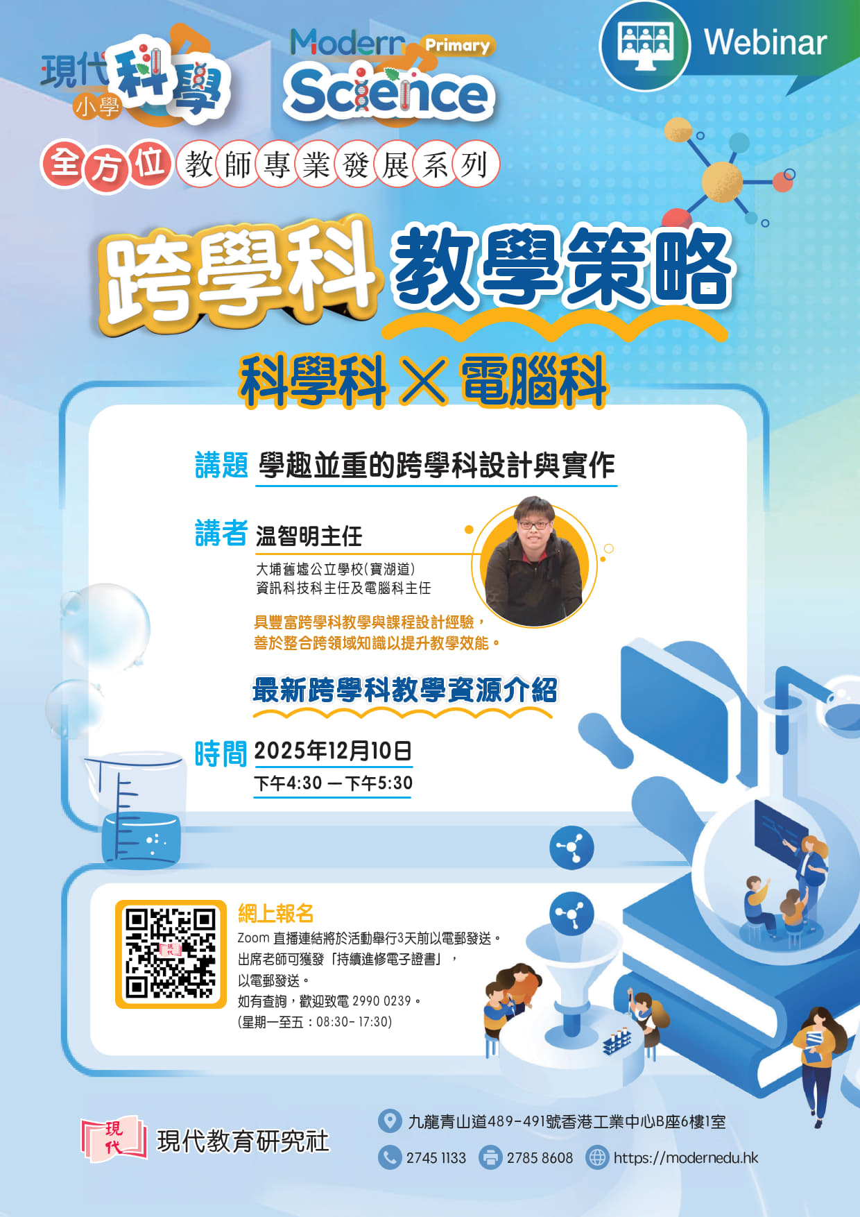 :全方位教師專業發展系列 跨學科教學策略 科學科X電腦科(ZOOM LIVE)
