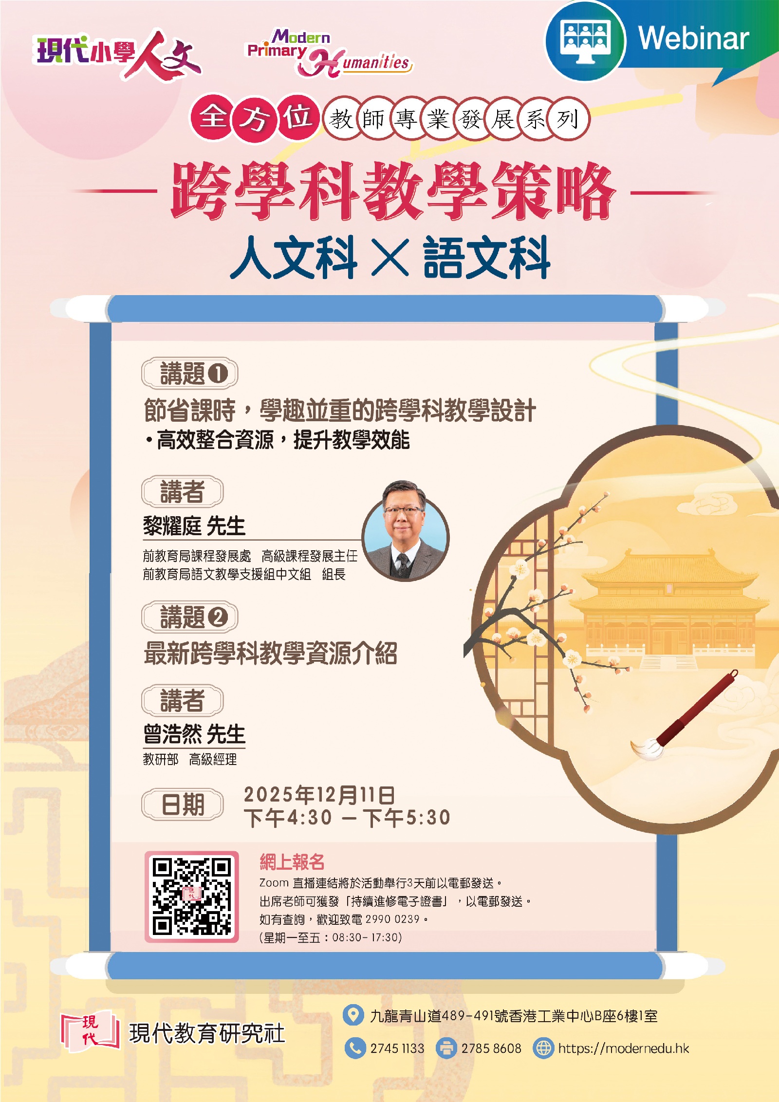 :全方位教師專業發展系列 跨學科教學策略 人文科X語文科(ZOOM LIVE)